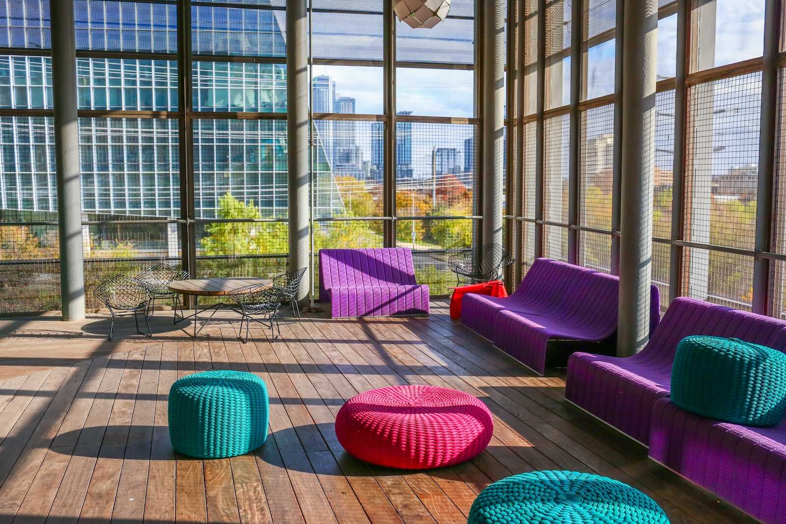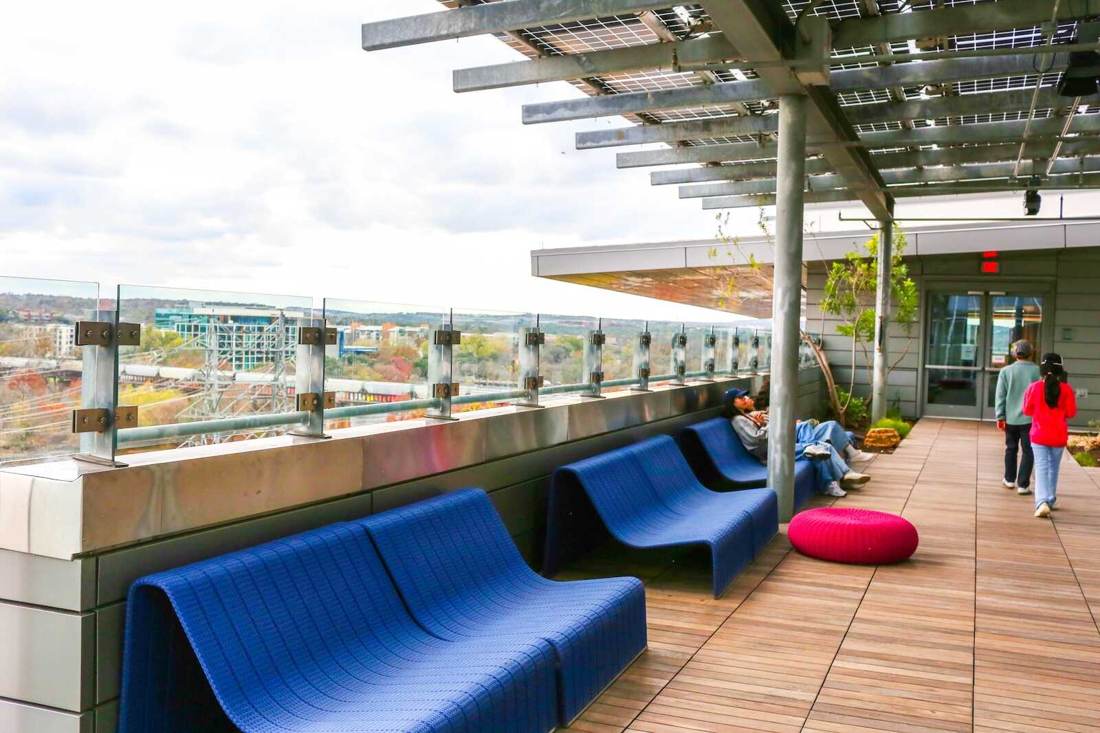 One of the most underrated spots in Austin Central Library is its rooftop observation deck. Located on the sixth floor, this open-air space offers spectacular panoramic views of downtown Austin, Lady Bird Lake, and the surrounding green spaces.