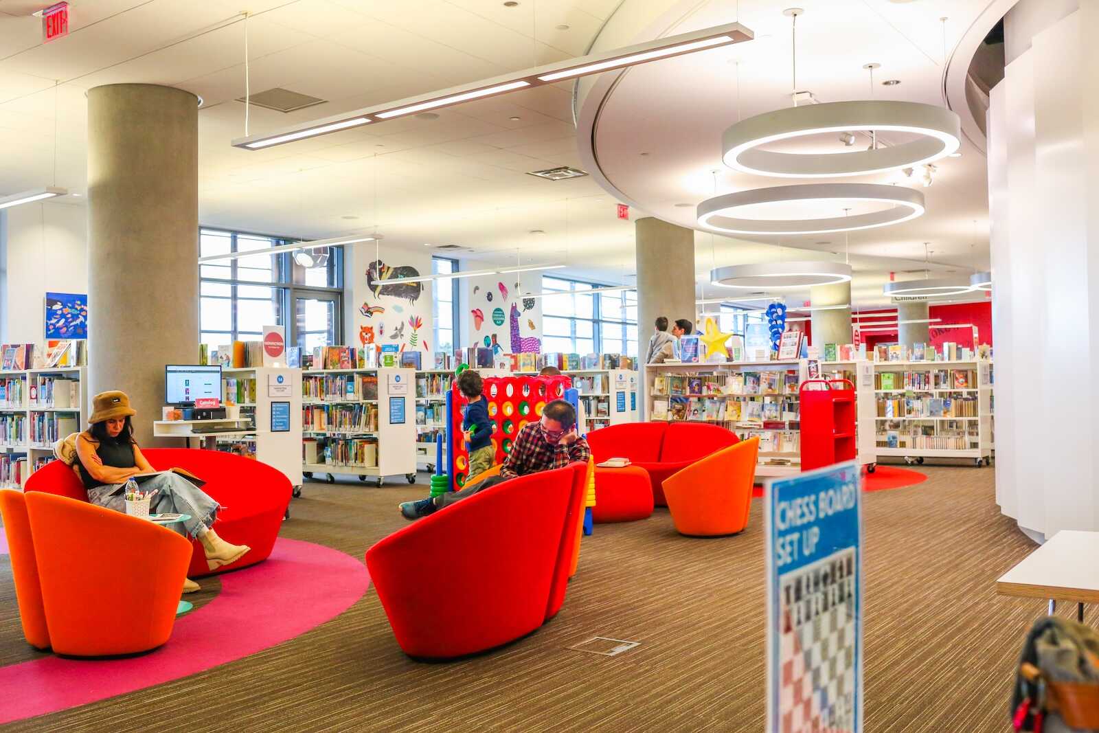 Where to Play: Families can borrow games from the front desk or check designated play areas in the children’s section and common spaces.