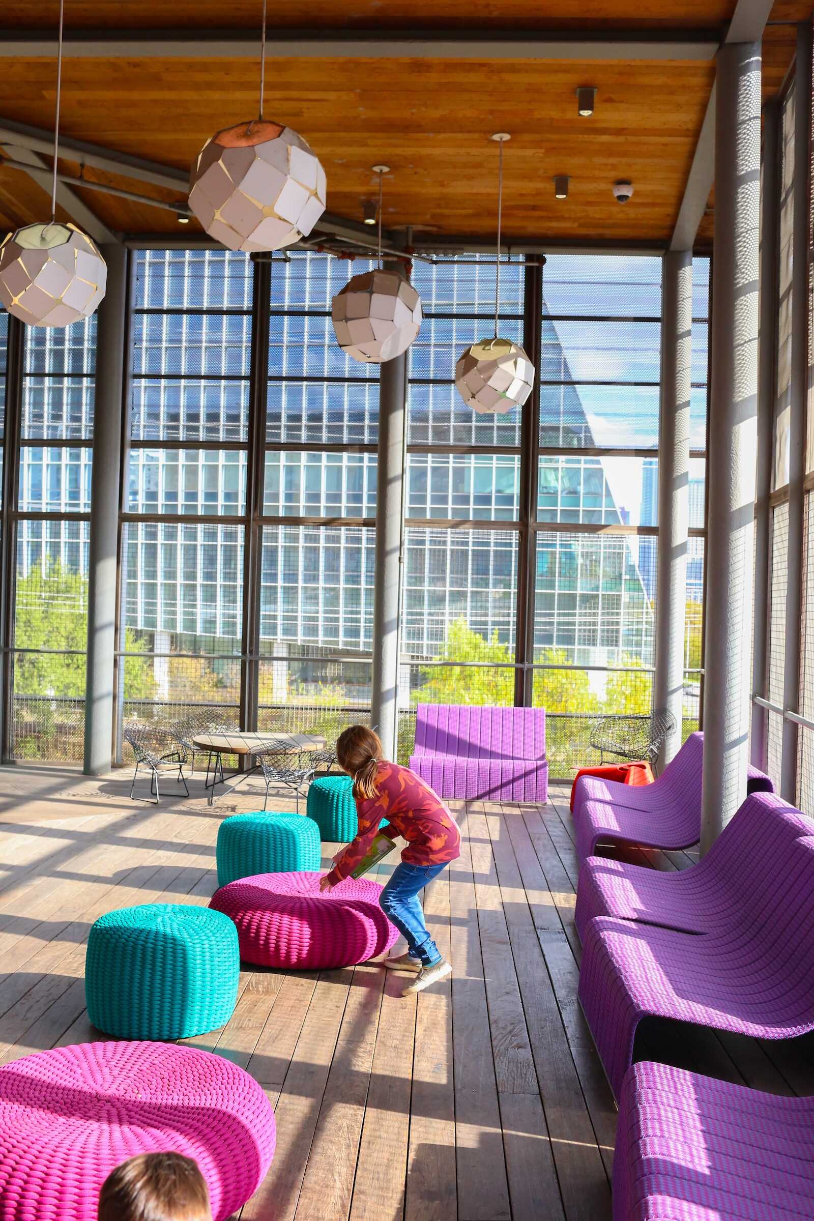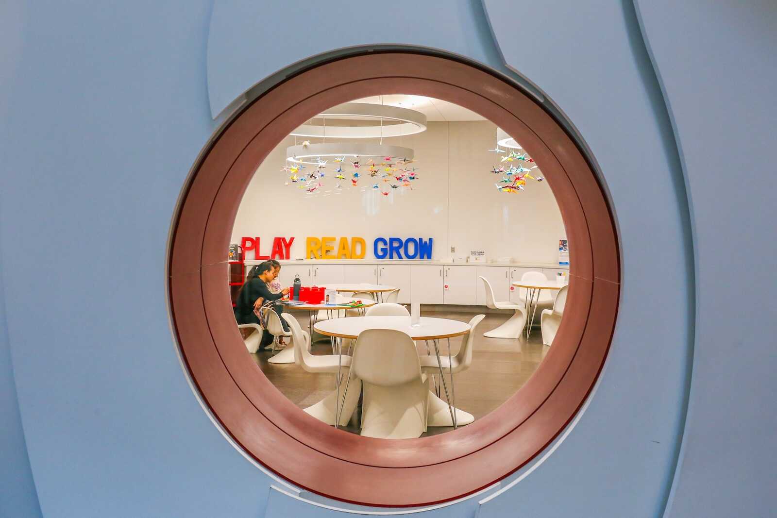 - Reading Nooks & Window Seats – Kids can curl up in soft chairs, treehouse-inspired nooks, or by the large windows overlooking Shoal Creek.