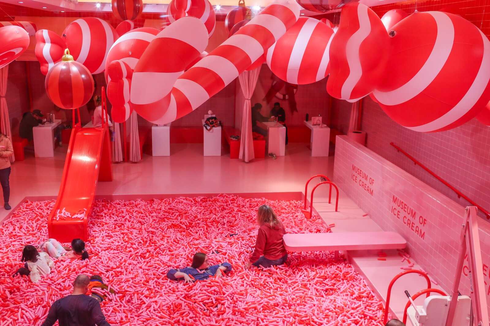 The Museum of Ice Cream at The Domain in Austin transforms into a magical winter wonderland during Christmas, offering a festive and interactive experience perfect for the holiday season. Visitors can indulge in unlimited seasonal ice cream treats, wander through immersive holiday-themed exhibits, and take part in joyful activities like crafting letters to Santa or standing inside a giant snow globe.