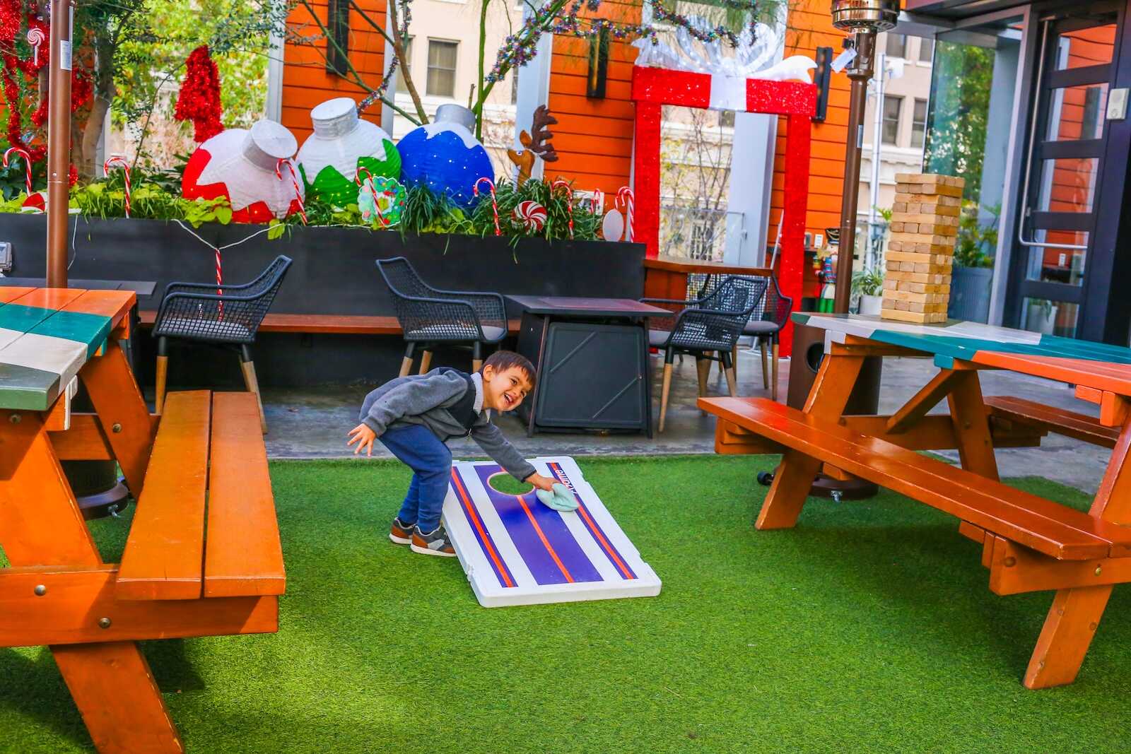 This holiday-themed pop-up bar features over-the-top Christmas decorations, themed cocktails, and festive vibes.