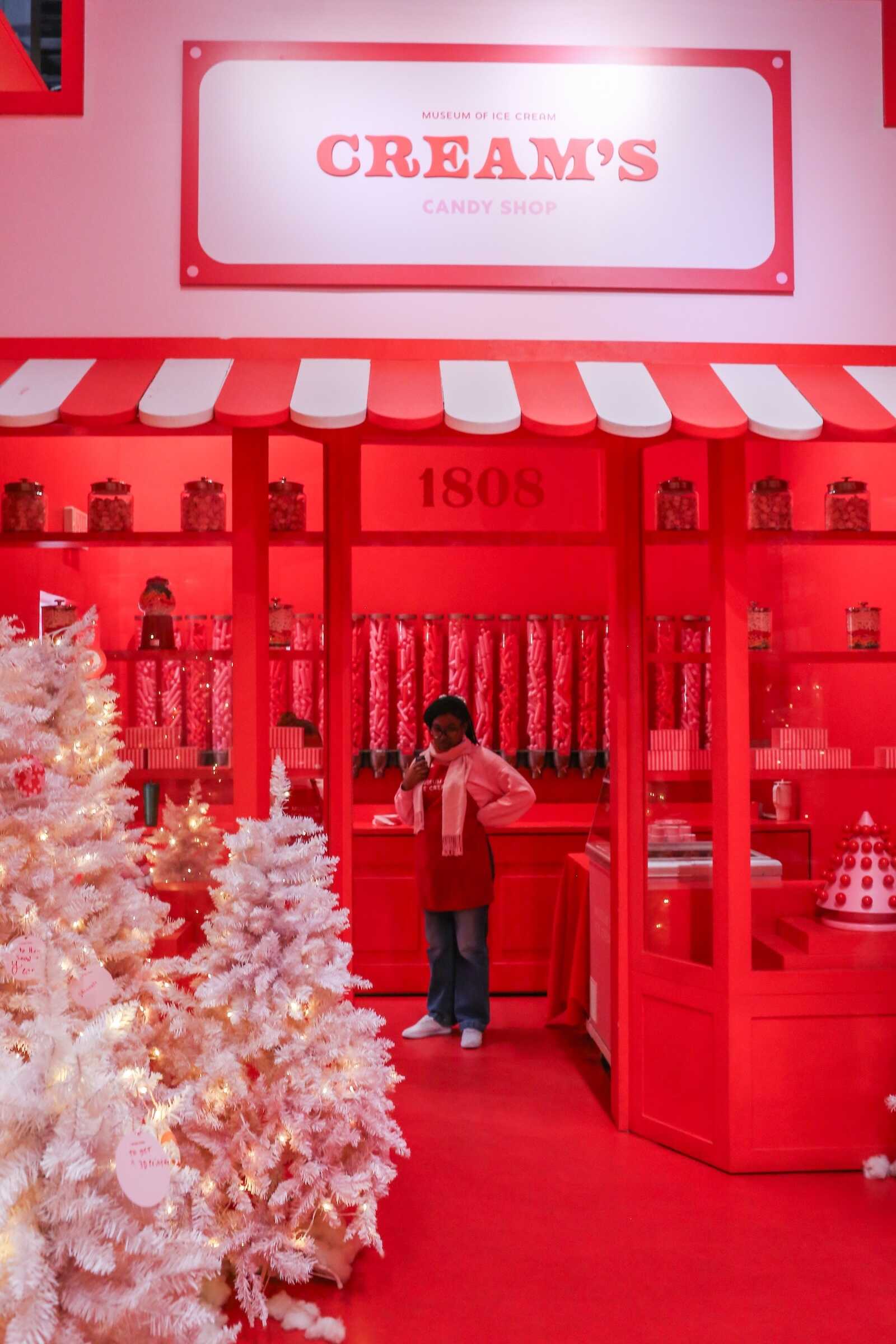I would call Cream’s Candy Shop the candy red room. During the holiday season it is filled with white sparkle Christmas trees and you can make DIY Christmas tree ornaments. There’s also ice cream dots available for a treat in this room.