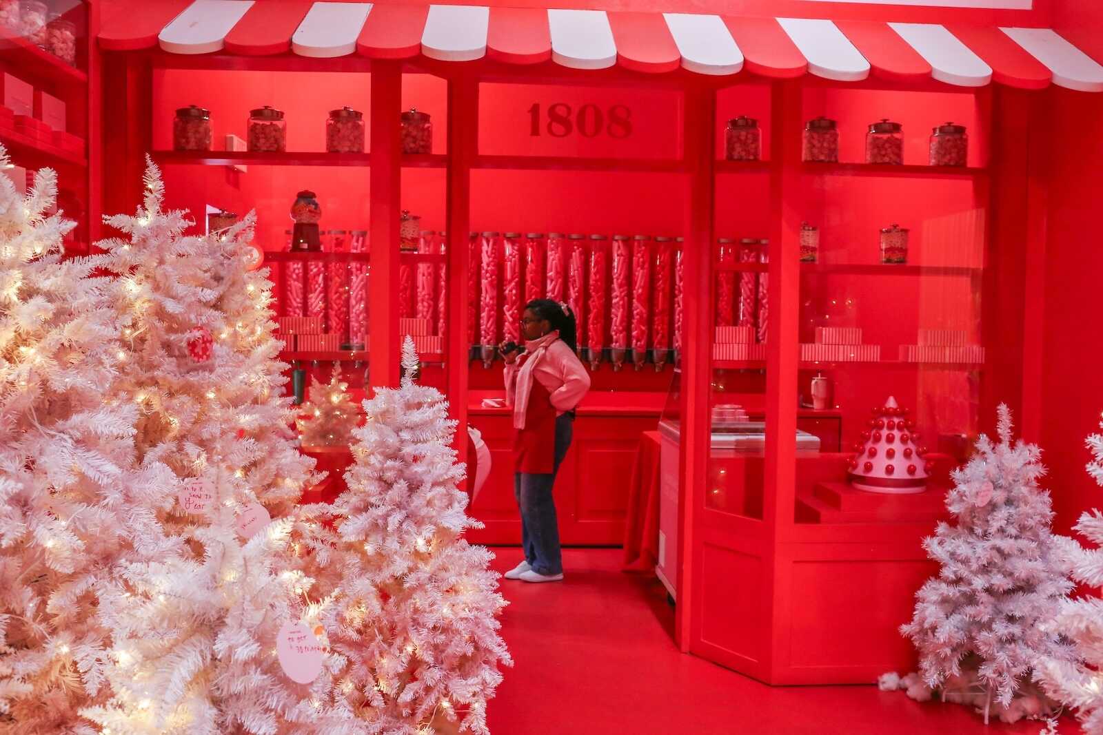 Scroll through this blog post to find over 85 photos from our visit in 2024. It was December, meaning Christmas time! So you’ll see how they transformed the space into a holiday-themed candy wonderland.