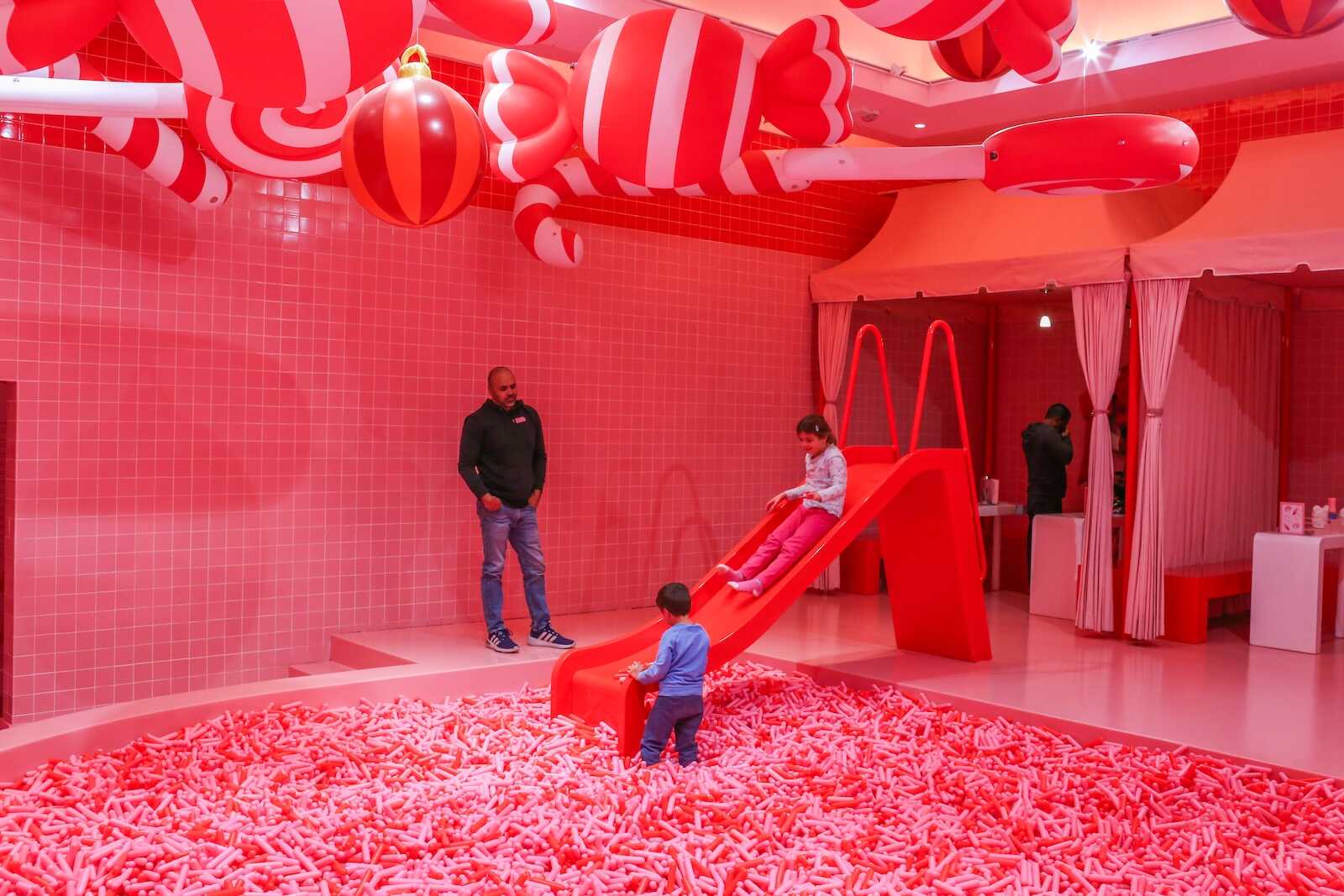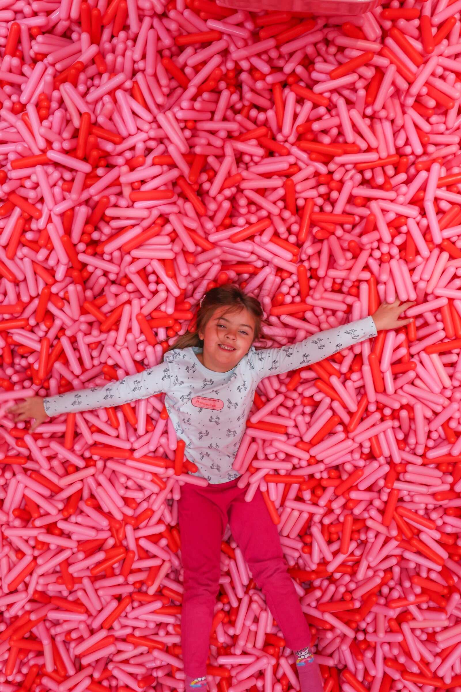 Comfortable shoes are also a must, as you’ll be walking through multiple interactive rooms and climbing into fun installations like the sprinkle pool.