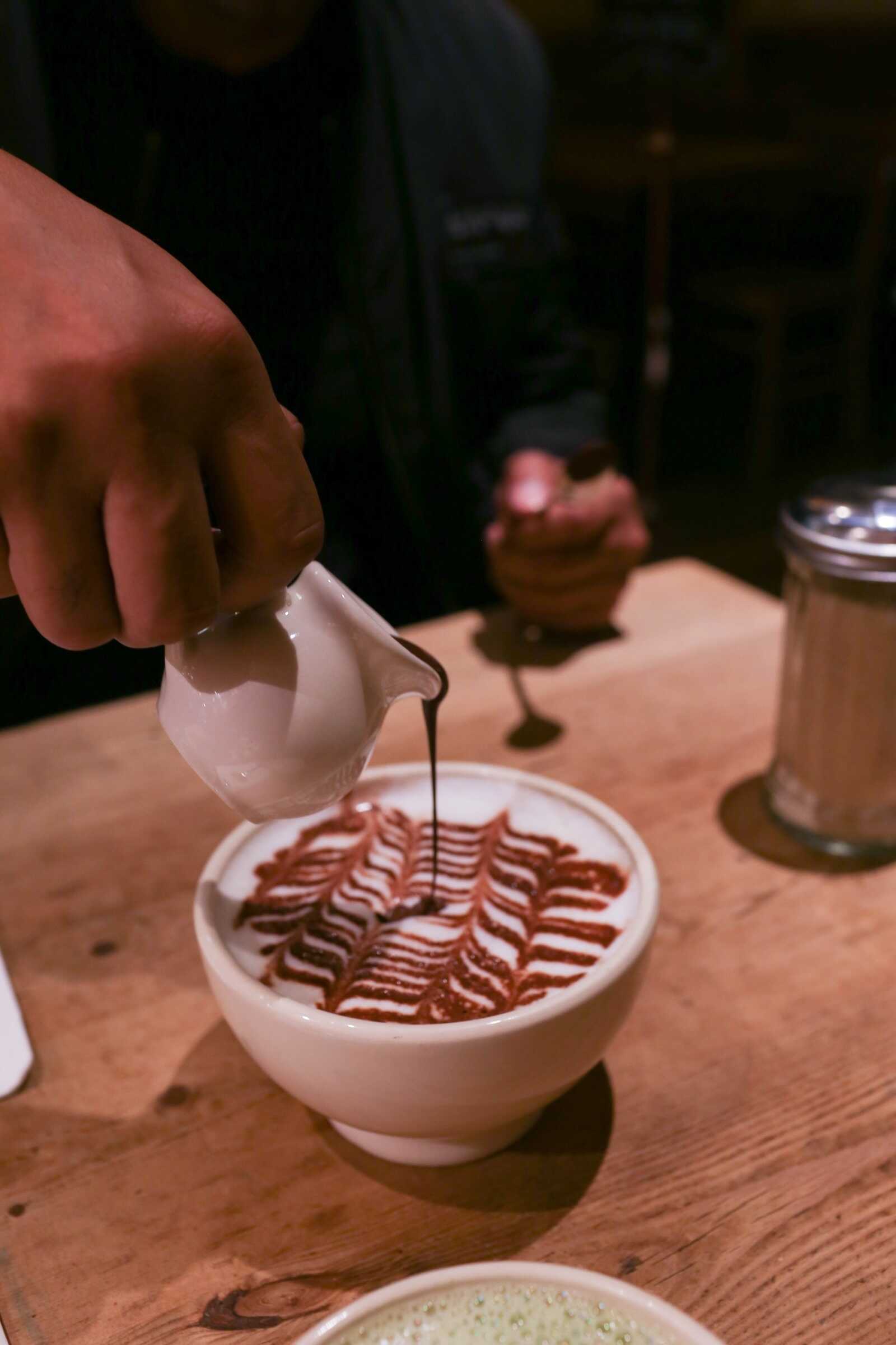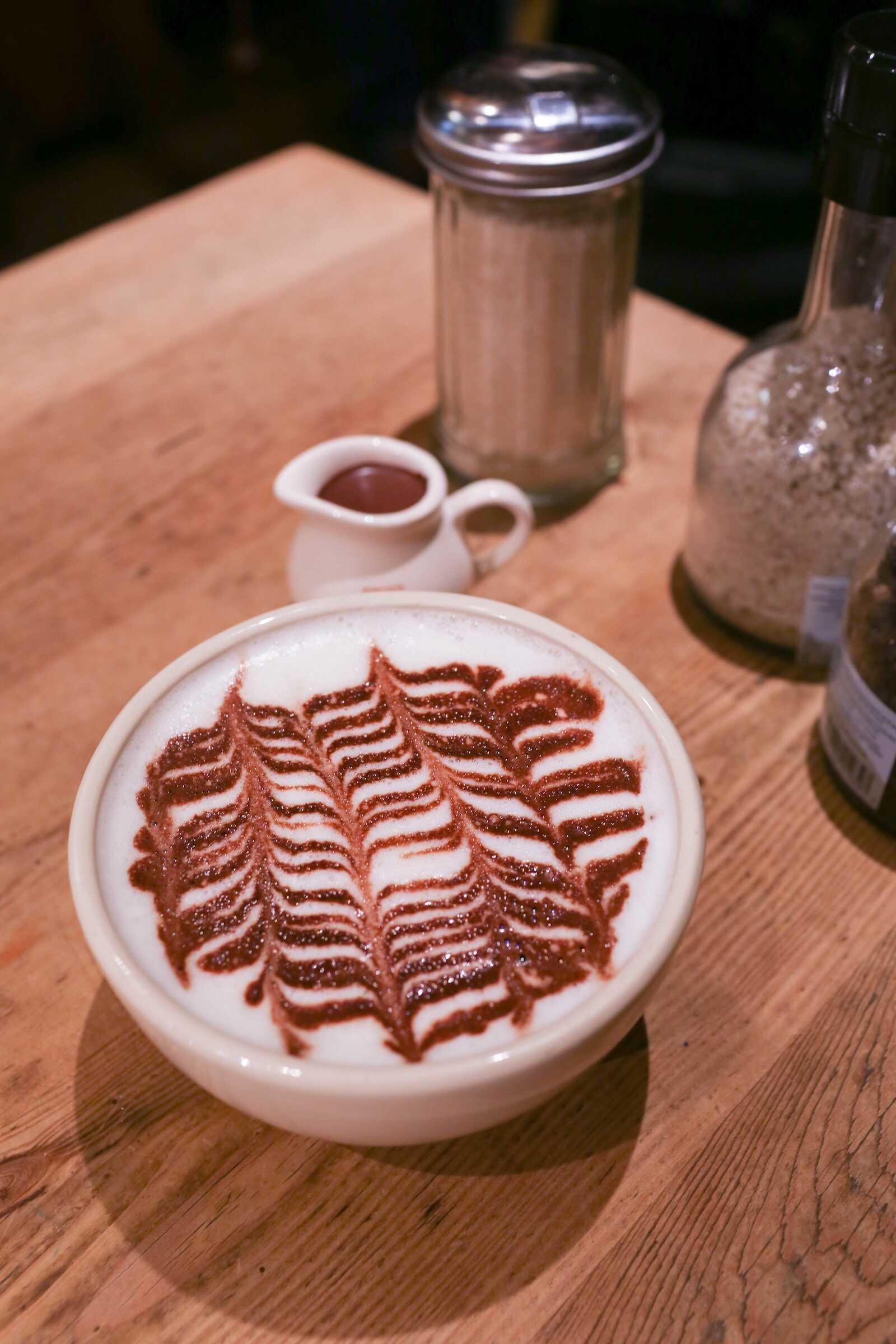 Le Pain Quotidien’s hot chocolate is a rich, velvety treat served in a signature bowl, perfect for a cozy and indulgent experience.