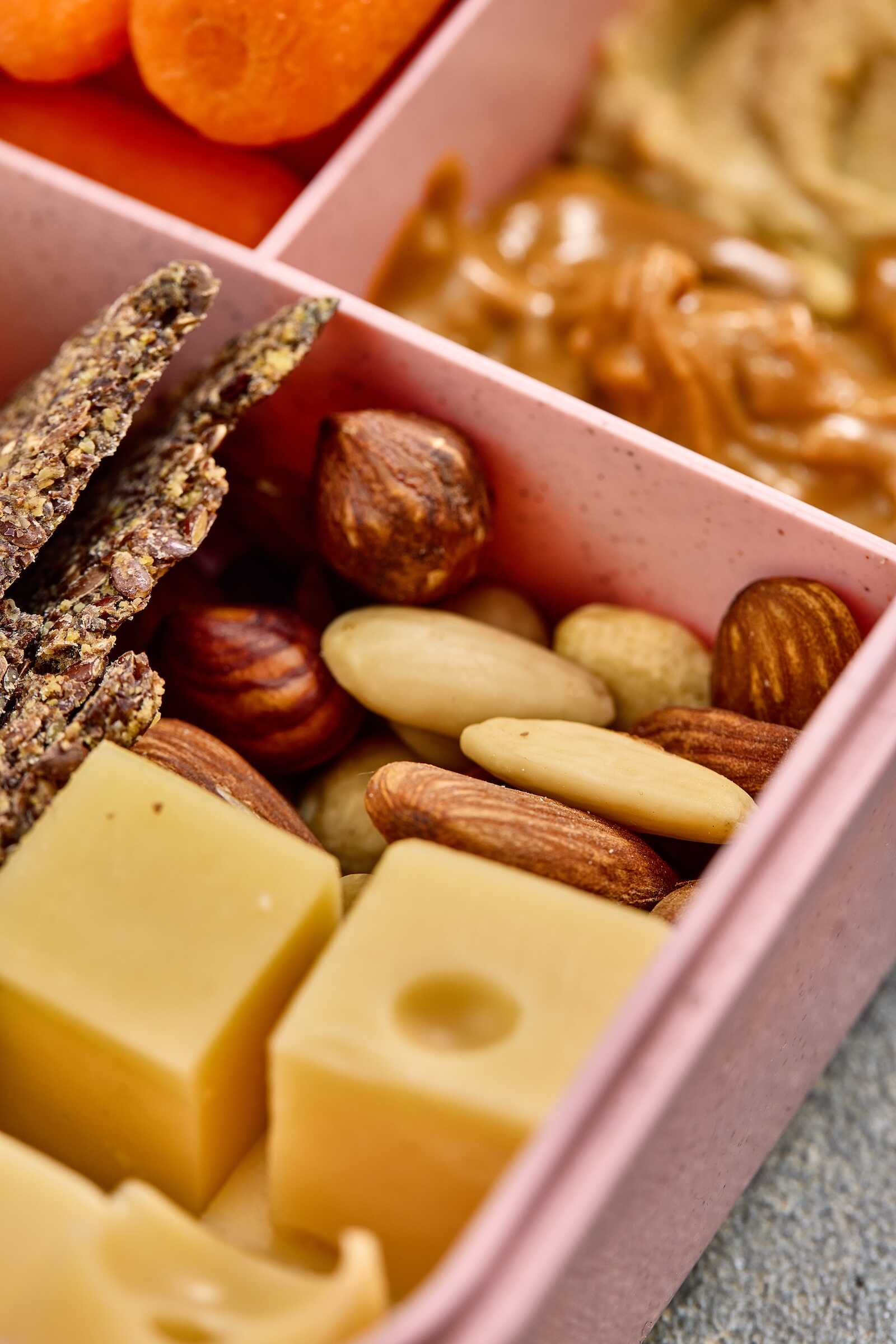 Scoop your ¼ cup of nuts into a dry, sealed section so they stay fresh and crunchy.